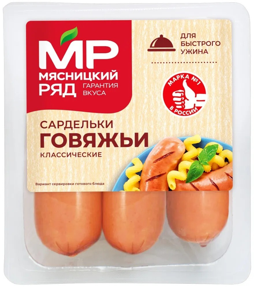 Продукт с приятным ароматом копчения и традиционным вкусом говядины. Сардельки идеально подчеркнут вкус овощного рагу. Продукт категории А (бывший высший сорт): массовая доля мышечной ткани более 80%.